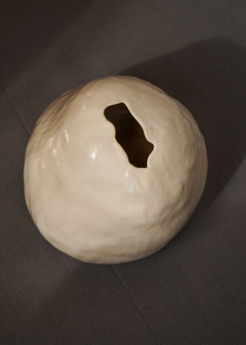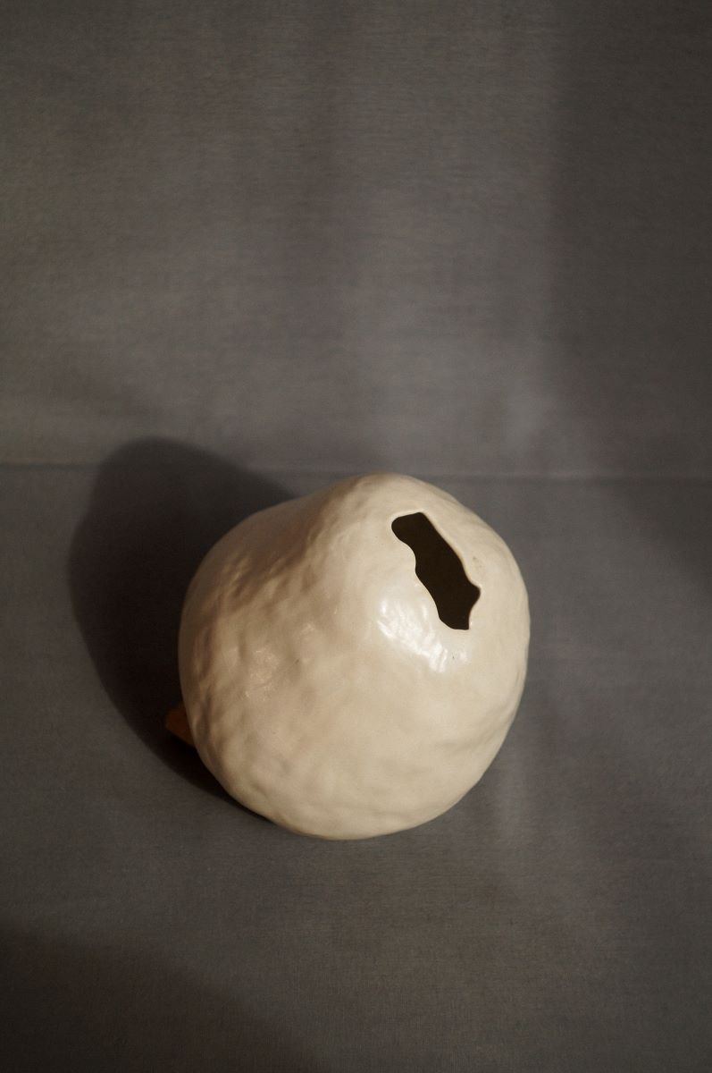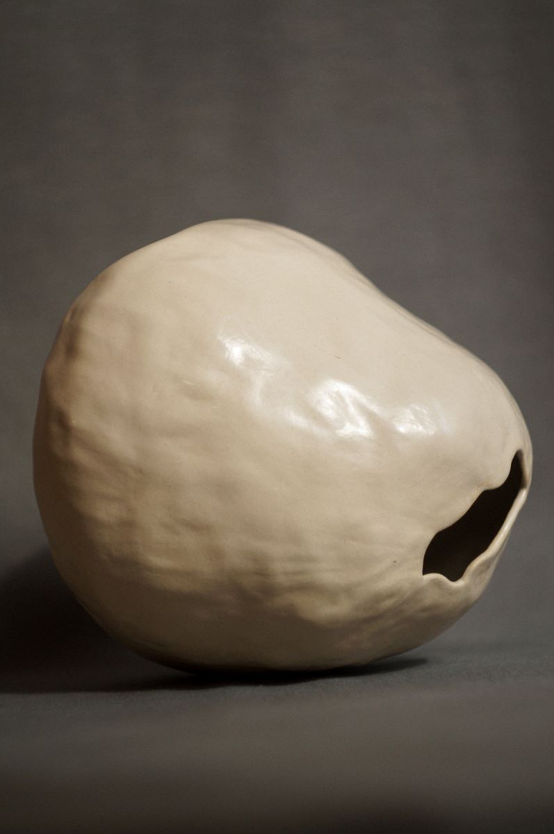 Nasceu o experimento de tentar estruturar a peça finalizando em uma abertura estreita, no limite onde meus dedos ainda poderia entrar para modelar.