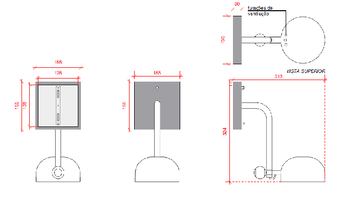 Dimensão: h 60 cm L 15 cm prof. 25 cm Ø refletor 15 cm